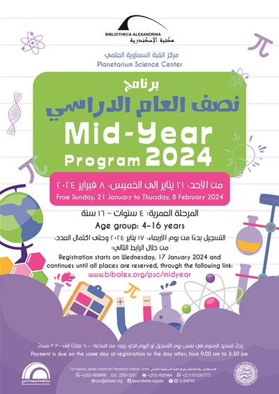 يُنظم مركز القبة السماوية العلمي برنامج نصف العام الدراسي للأطفال والشباب من سن 4 سنوات إلى 16 سنة، في الفترة من الأحد، 21 يناير إلى الخميس، 8 فبراير 2024.