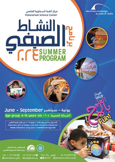 ينظم مركز القبة السماوية العلمي برنامجه الصيفي 2024 للأطفال والشباب من سن 4 سنوات إلى 16 سنة.