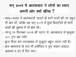 | The risk of dying from terrorism was even lower than that from hitting by lightening. Assume how surprised you will be, if someone tell you that your chance of hitting by lightening will be as high as that of homicide. |
