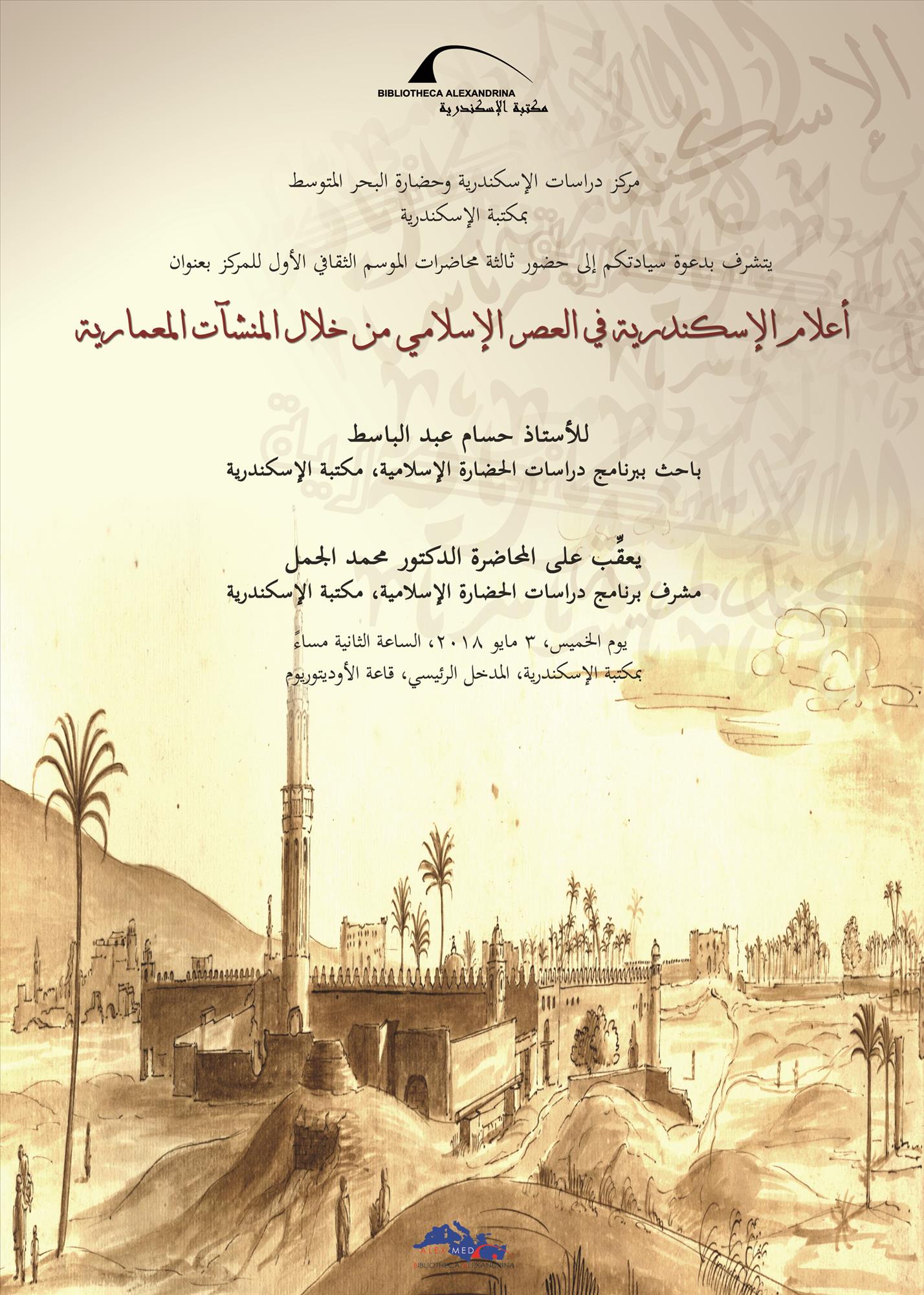 في إطار هذا الموسم الثقافي الأول قدم المركز يوم الخميس، الموافق 3 مايو 2018، الساعة الثانية مساءً بمكتبة الإسكندرية، بقاعة الأوديتوريوم المحاضرة الثالثة بعنوان "أعلام الإسكندرية في العصر الإسلامي من خلال المنشآت المعمارية" للأستاذ حسام عبد الباسط، باحث ببرنامج دراسات الحضارة الإسلامية، ومؤرخ وعالم آثار، له العديد من المطبوعات مثل ذاكرة الإسكندرية الفوتوغرافية، تحقيق كتاب المزارات الإسلامية لحسن قاسم، وصف الإسكندرية، شغل وظيفة مفتش آثار بالمجلس الأعلى للآثار بداية من عام 2003؛ حيث شارك في العديد من البعثات العلمية للتنقيب عن وترميم الآثار، ويشغل منصب مدير المتابعة الأثرية بمدينة الإسكندرية بداية من عام 2012. وعقب على المحاضرة الدكتور محمد الجمل المشرف على برنامج دراسات الحضارة الإسلامية، مكتبة الإسكندرية.