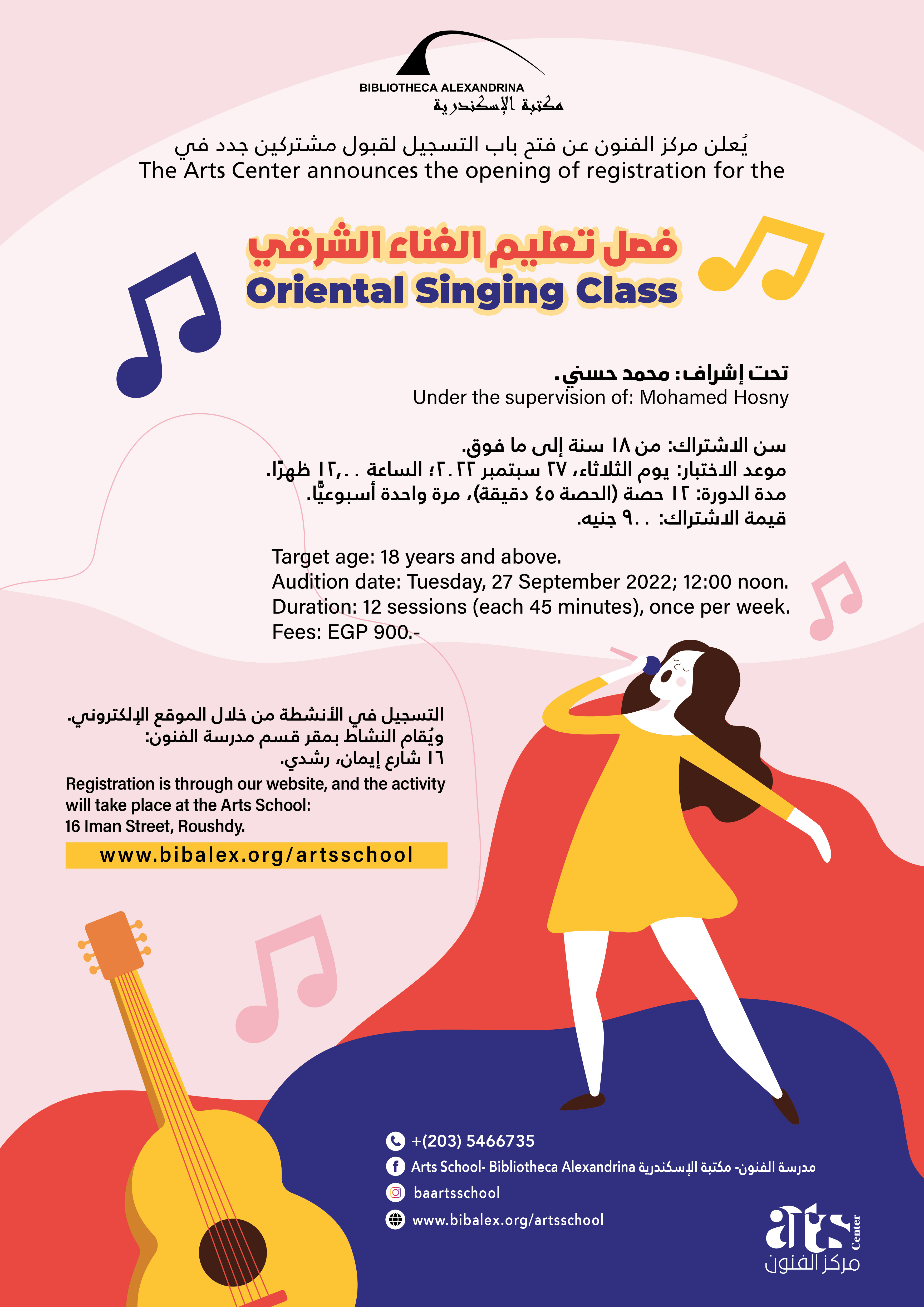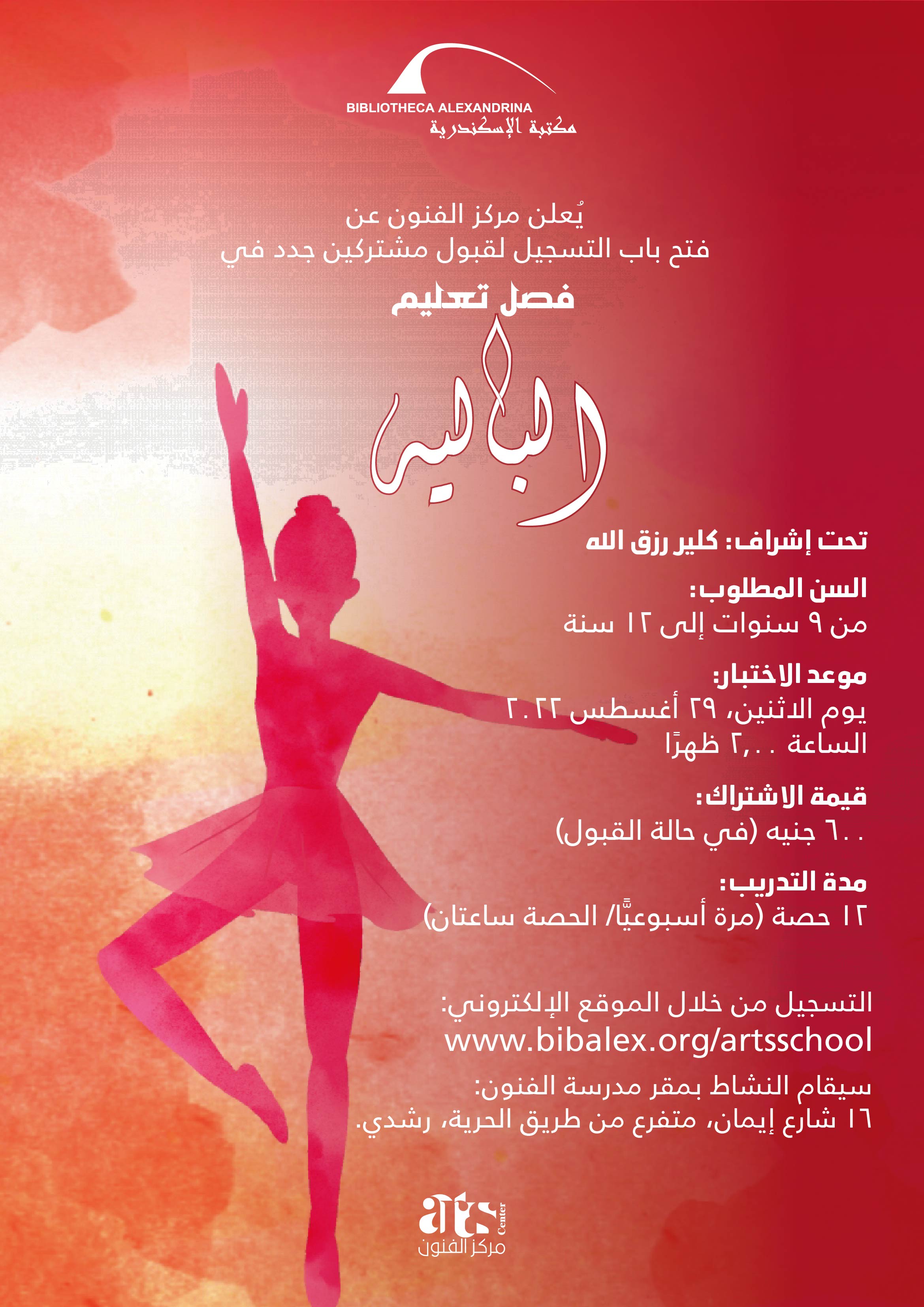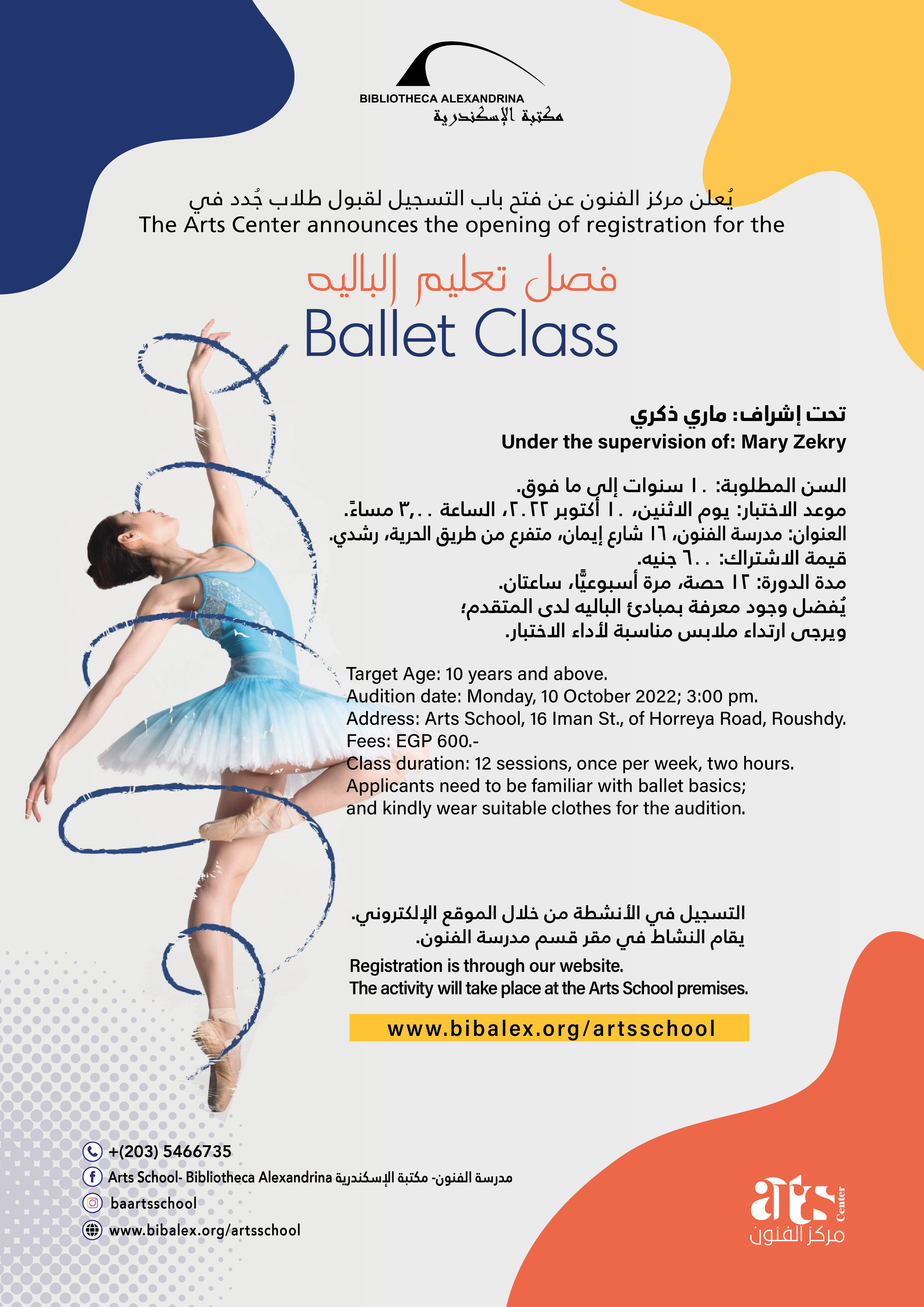 The Arts School- Bibliotheca Alexandrina announces the admission of new students in Ballet Class, under the supervision of Mr.s / Mary Zekry