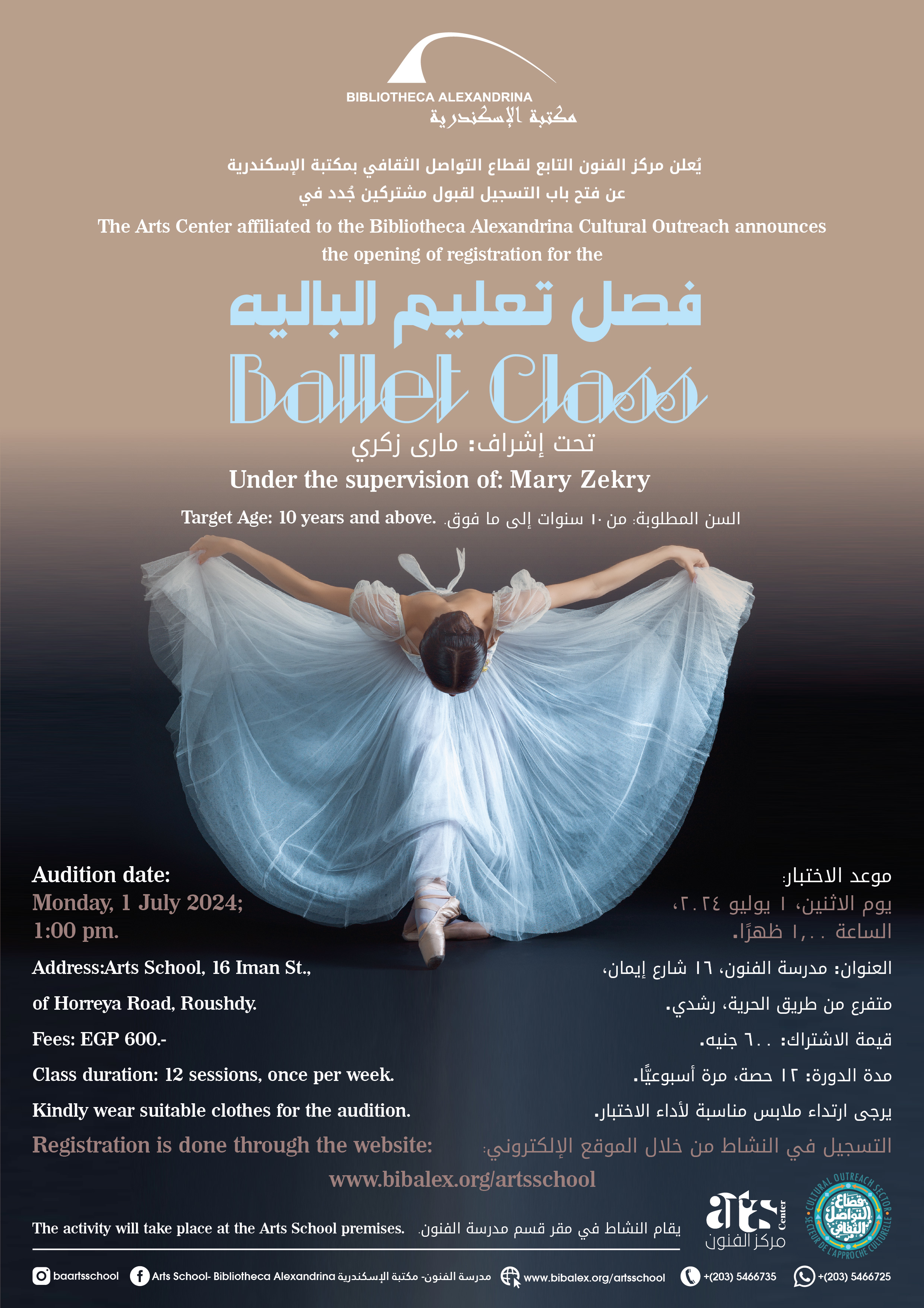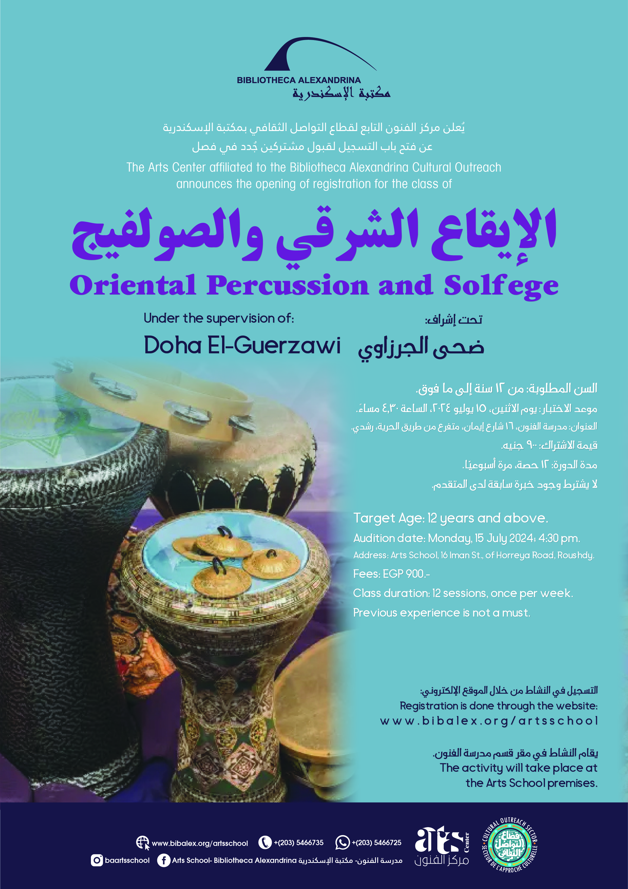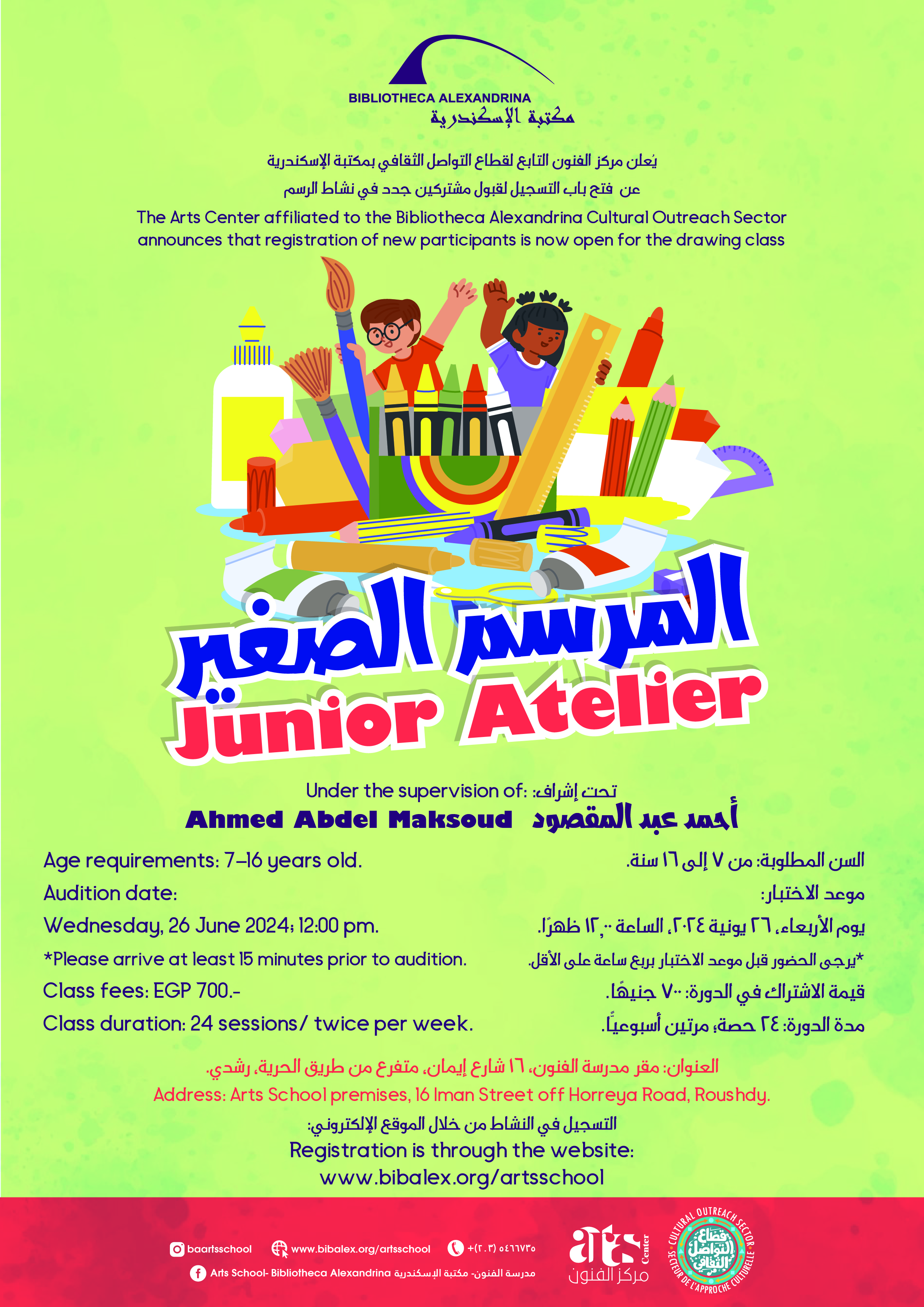 The Arts School- Bibliotheca Alexandrina announces the admission of new students in Drawing Class (Junior Atelier), under the supervision of Mr. Ahmed Abdelmaqsoud.