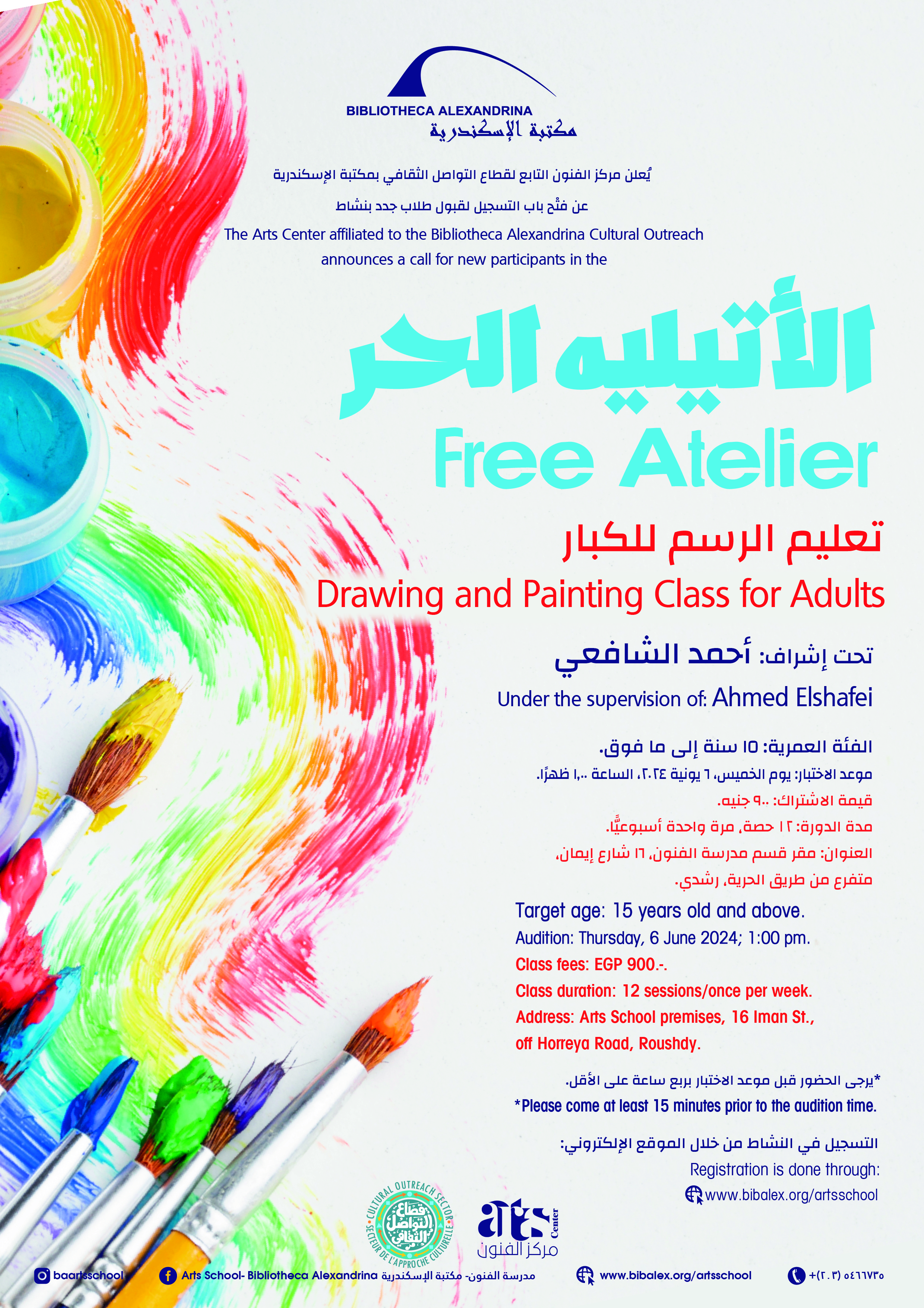 The Arts School- Bibliotheca Alexandrina announces the admission of new students in Drawing Class (Free Atelier), under the supervision of Mr. Ahmed Elshafei.
