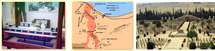 El Alamein takes its name from the twin peaked hill known as Tell El Alamein. Enjoy the fascinating scenery and mild weather. It was here during World War II that more than 8,000 soldiers of the troops of both the Allied Forces led by Montgomery and the Axis Forces led by Rommel lost their lives