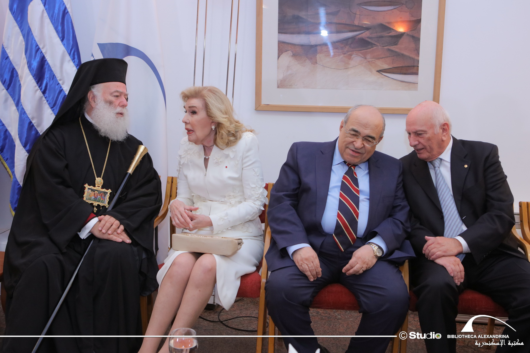 His Eminence Patriarch Theodore II of Alexandria and All Africa addressed the event and spoke at length about the important work of the Center for Hellenistic Studies and the contribution of the Vardinoyannis family: “This unique institution offers the opportunity to young men and women from across the world, from Egypt, Europe and the Middle East, to study the achievements of Hellenistic Alexandria towards acquiring a degree or a postgraduate diploma, or to delve even deeper into research, producing new knowledge and acquiring a PhD and pursuing a life of academic research. To become active members of the dialogue of cultures, the focus of which is justifiably the Alexandria Center. To be reborn as bright ambassadors of culture, fertilising every human environment they come into contact with after their graduation. In addition to being a beacon of knowledge for the past ten years, the Center has further consolidated the relations between Greece and Egypt and the deep historical and cultural synergies of our two people. The knowledge of the living history of the city of Alexandria, of ancient Greece and ancient Egypt, the awareness of the continuity of this historical course up to this day, bears more fruit that what is visible to the naked eye. We owe particular gratitude to you, honorary President of the Board of the Center for Hellenistic Studies of the Bibliotheca Alexandrina, Mrs Marianna Vardinoyannis: without your continuous and constructive support, the godly work we are celebrating today and its glorious future would never have been realised”. (Read the Patriarch’s full speech.)