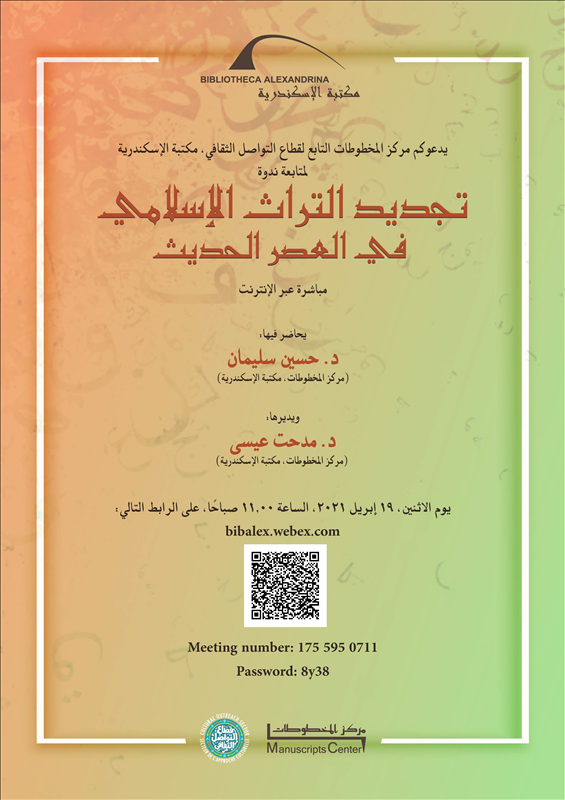 يقيم مركز المخطوطات بمكتبة الإسكندرية ندوة بعنوان "تجديد التراث الإسلامي في العصر الحديث"