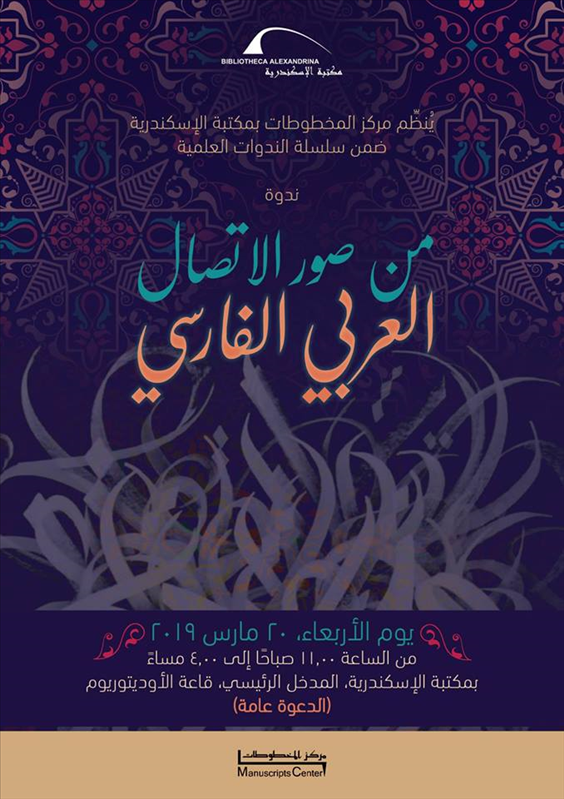أقام مركز المخطوطات التابع لقطاع التواصل الثقافي بمكتبة الاسكندرية ندوة من سلسلة الندوات العلمية لمركز المخطوطات وهي "ندوة من صور الاتصال العربي الفارسي" وذلك في العشرين من شهر مارس الحالي. ويشارك في الندوة مجموعة من الأساتذة المتخصصين في التراثين العربي والفارسي.