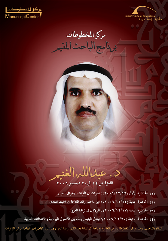 وقد قام د/ عبد الله الغنيم بقبول دعوة مركز المخطوطات للمشاركة في فعاليات برنامج الباحث المقيم وألقى أربع محاضرات :