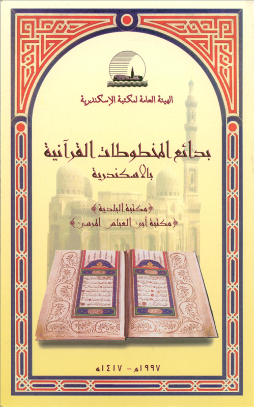 فهرس مصور للمصاحف الموجودة بمكتبتىْ (بلدية الإسكندرية - مسجد أبى العباس المرسى) وهو يبدأ بمقدمة عن دور المصحف فى تأسيس الحضارة العربية الإسلامية ، ثم يقدم حصراً كاملاً لمجموعة المصاحف الخطية النادرة ونماذج مصورة من أهمها وأكثرها جمالاً وروعة فى التذهيب والزخرفة.. ومانراه على غلاف الكتاب، هو بداية المصحف المحفوظ بمسجد أبى العباس المرسى تحت رقم 79/ 221 ومقاس أصله 48× 34 سم، وقد أوقفته على مكتبة المسجد: إنجى هانم حرم محمد سعيد باشا .