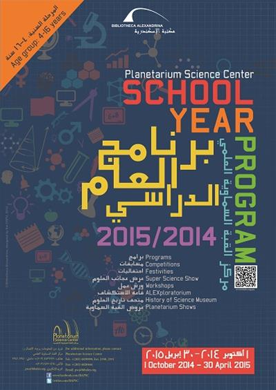 يدعوكم مركز القبة السماوية العلمي للاشتراك في برنامج العام الدراسي في الفترة من 1 أكتوبر وحتى 30 أبريل. ويتكون البرنامج من مجموعة من ورش العمل التي تناسب مجموعات عمرية مختلفة. كل ورشة عمل تتكون من 10 طلاب إلى 25 طالب، برسوم 5 جنيه لكل طالب. وتقام ورش العمل من الأحد إلى الخميس، مجموعتان يوميًّا من 11:00-10:00 ومن 11:30-12:30. ورش العمل كالتالي: