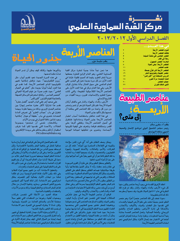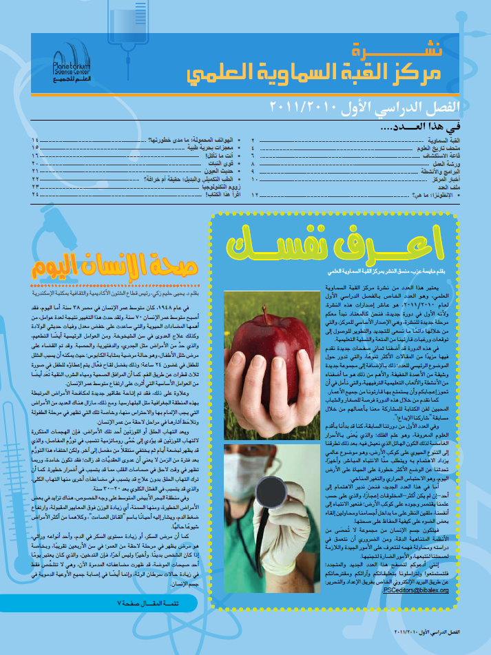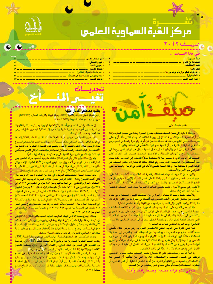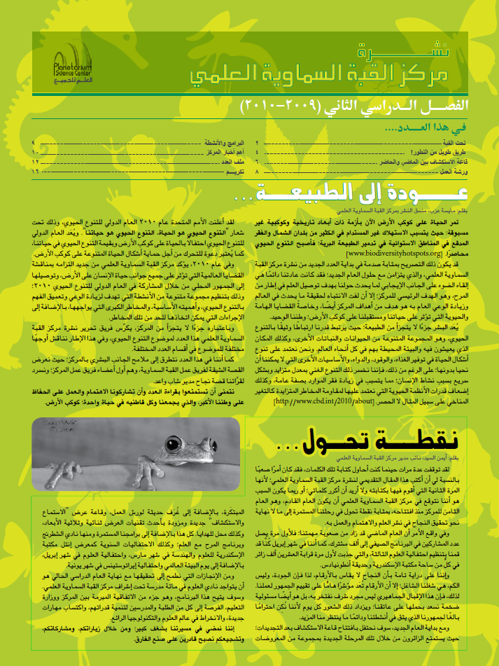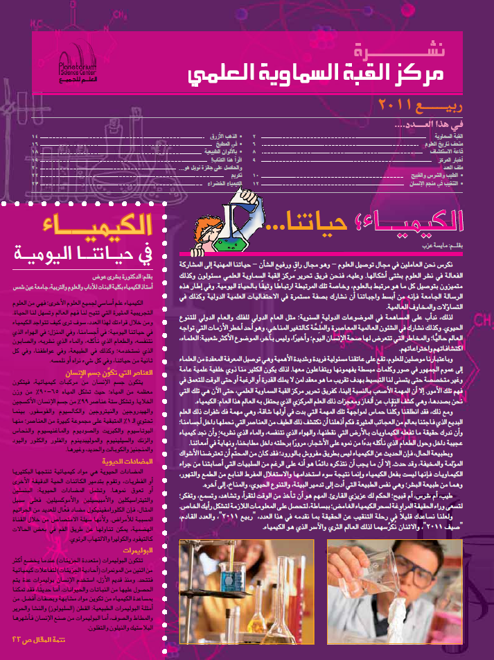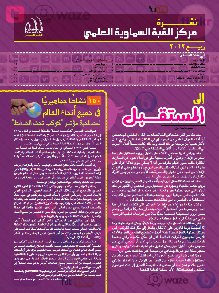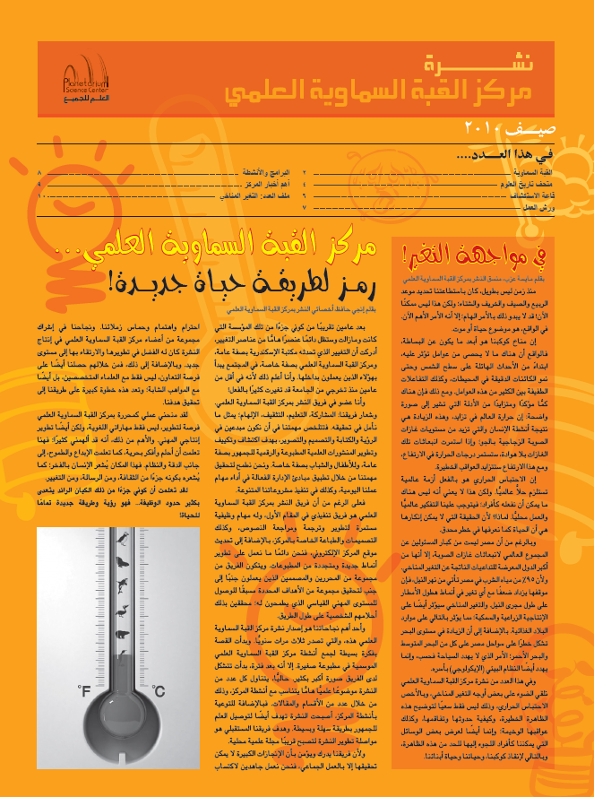 إن نشرة مركز القبة السماوية العلمي هي علامة بارزة على الطريق لتحقيق هدف المركز في تعميم العلوم، وتحقيق رؤية "العلم للجميع!". وتهدف النشرة إلى الترويج لمجموعة من أنشطة المركز البسيطة والفريدة، التي تسعى إلى تعليم العامة، مع التركيز على الأطفال والشباب، عن طريق المتعة والترفيه.