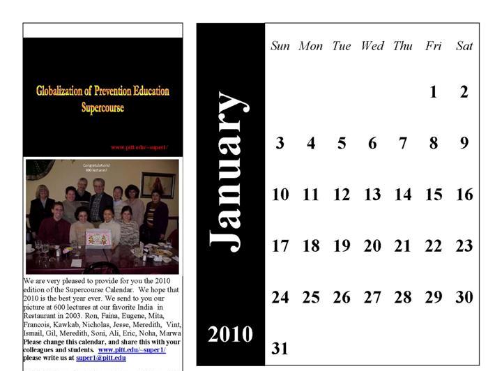 Download the Microsoft Word Version of the 2010 Supercourse Calendar