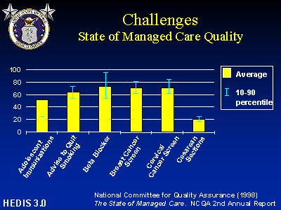 The data represents information from NCQA’s Accreditation program -- in which more 447 participating health plans. There are 630 health plans in the U.S today. There are 60 HEDIS measures but these 10 are the most widely reported. In addition, the reported included satisfaction measures of which I reported one. These are considered the most far reaching measures and they have been available since HEDIS 1.0 so they can be reported as trend data.