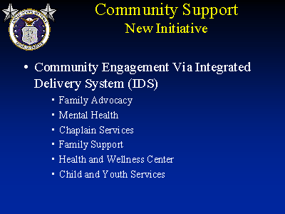 - Goal: strong, healthy, resilient communities - vital to meet challenges of today’s environment / AF mission (Global Reach, Global Power; EAF)