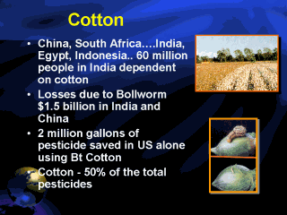 | - Bt Cotton - yield increases up to 40%