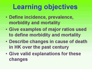 mortality, such as, incidence, prevalence, morbidity and mortality;