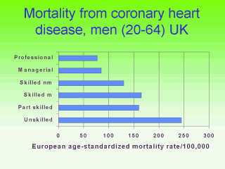 arranged by the Registrar General of the UK’s occupational groupings in the UK. What can you deduce from the chart? What explanations do you have for the gradations in mortality? |