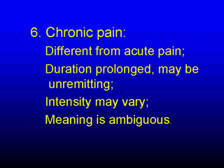 acute pain. It has already been mentioned that chronic pain no longer serves a purpose of