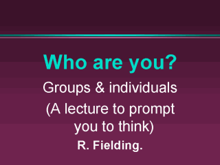 | The primary aim of this presentation is to get you to think, rather