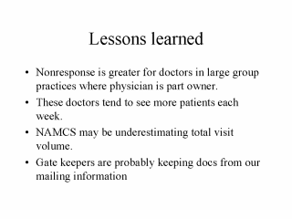 To learn more about reliability of survey estimates for NAMCS, please click here