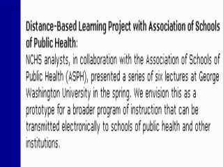 http://www.cdc.gov/nchs/about/otheract/Educators/unieducators.htm#Distance-Based Learning Project with Association of Schools of Public Health |