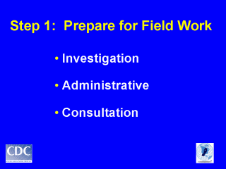 Investigation – must have appropriate scientific knowledge, supplies, equipment (lab, personal safety, etc.). Must learn how to collect, store, and transport samples. Administrative – if you work for the government, there’ll be procedures you must follow! Consultation – know your role – are you in the lead, or a consultant? Know when and where you are to meet local officials and contacts when you arrive in the field. |