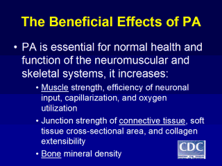 Even though injury may be one of the few adverse effects of physical activity we know that the human musculoskeletal and neuromuscular systems need some level of activity for normal health. Motion increases muscle and connective tissue strength, improves blood flow and efficiency, increases the cross-sectional area of muscles, tendons and bones. Weight bearing physical activity is essential for developing and maintaining peak bone density.