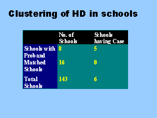 何杰金氏病會群聚在學校發生。因此如果有一個小朋友發生了何杰金氏病,那麼就更可能有第二個小朋友接著發生何杰金氏病,這樣再次暗示這種疾病是因一種可傳染性的病原所引起。