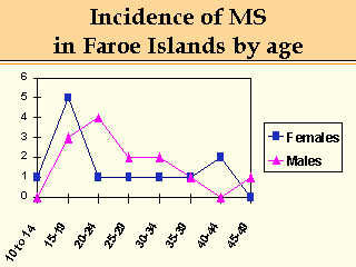There was a large epidemic at the Faroe Islands. The age at onset curves during the epidemic were considerably younger than in other areas not having an epidemic. |