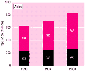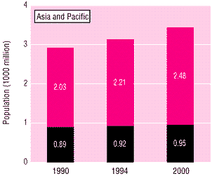 2000 for developing countries, by each major region and in total. In unserved areas faeces