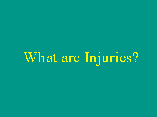 We begin by asking the broad questions of What are Injuries? Why should we have an interest in injuries and research into the epidemiology of injuries? |