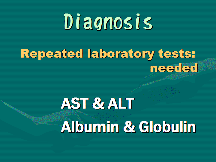 Repeated laboratory tests are needed for the diagnosis of chronic hepatitis. Serum ALT, AST usually show different degree of elevation, however, they may be within normal range. Normal value does not mean the hepatitis is inactive, and the degree of elevation only reflects the severity of liver cell damage at the time of the test, but does not predict the prognosis of the disease. Serum albumin is synthesized only in the liver, therefore its serum level reflects the functional reserve of the liver. Serum globulin level reflects the damage of reticuloendothelial system in the liver.