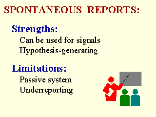 Most spontaneous reporting systems are underestimates of the true incidence or prevalence of the problem because they are passive in nature. In other words, the data are dependent on the participation of the reporter. |