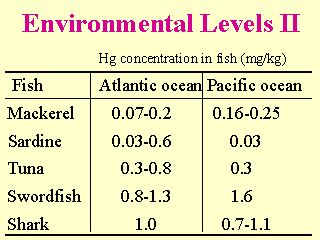 form and below the limit of detection (20 mg Hg/Kg fresh weight). Fish and fish products are the dominant source of methylmercury in the diet. (Note: / Mg/Kg = 1ppb) |