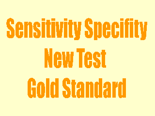對於新的檢驗方法的敏感度與特異度的測定則是與已有的「黃金標準」作比較而來做決定。假定有病的人與 無病的人各為 100 人時,其檢驗的敏感度與特異度可能各為百分之九十與百分之九十五。