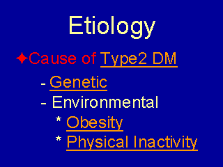 Type 2 diabetes is the result of the interplay of genetic factors and environmental exposures. The most important environmental factors appear to be those that lead to obesity and physical inactivity. Yet genetic factors are also very important in determining which individuals are susceptible to developing the disease. |