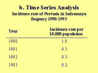 There was a decreasing trend of incidence of pertusis in Indramayu Regency between 1990-1993. One explanation was there was an increasing trend of Health Service utilization including DPT immunization coverage. |