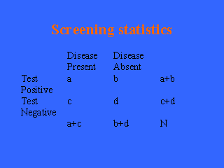 true positive rate. The specificity is the proportion who don’t have the disease that test negative: d/(b+d). This is the complement of the false negative rate. That is the false negative rate is 1-specificity or b/(b+d). The positive predictive value is the proportion of individuals who test positive who actually have the disease, a/(a+b). The negative predictive value is the proportion who test negative who don’t have disease d/(c+d). Note that the sensitivity and specificity are based on the columns of the table and thus are independent of disease prevalence, (a+c)/N, while the predictive values, which are based on the rows, are not. |