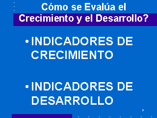 postnatal. El desarrollo, en cambio se evalúa a través de otro tipo de indicadores como lo son la diferenciación morfológica y funcional. Esta diferenciación se puede apreciar a través de la aparición de nuevas funciones bioquímicas, nuevas destrezas y habilidades, o nuevas pautas madurativas neurológicas y psicológicas. Tanto la evaluación del crecimiento como el desarrollo se realiza en forma comparativa con patrones de referencia realizados sobre poblaciones con características predefinidas (en cuanto a su sexo, edad, etnicidad, localización geográfica y nivel socioeconómico). Las desviaciones en el crecimiento y desarrollo con relación a los patrones de referencia puede estar significando la presencia de algún problema de salud. En general, la mayor parte de las enfermedades importantes que involucran a la población materno infantil, afectan el crecimiento y el desarrollo. |