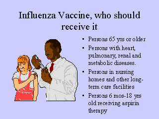 (1) Women who will be in the 2nd or 3rd trimester of pregnancy during the influenza season. (2) Persons who provide essential community services such as policemen, firemen. (3) Household members of persons in high-risk groups. (4) Persons who provide home care or assistance to persons in high-risk groups. (5) Any person, six months of age or older who wish to protect themselves against influenza even if they are not at increased risk for complications. |