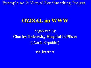 | On the initiative of the Charles University Hospital in Pilsen, the Association of Czech Hospitals adopted a project of joint follow-up of various economic and medical indices in 1996. The project was started in cooperation with the Institute of Healthcare Informatics and Statistics and the Ministry of Health of the Czech Republic. The basic idea was to create an information system for the needs of these three institutions. Within the Association there are 19 hospitals involved in the project. |