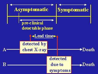 lead time is illustrated. Despite person A being diagnosed with