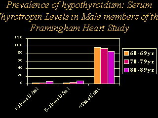 About 8% of men over sixty have signs of a failing thyroid and too little hormone and perhaps as many as 2.5% have signs of too much hormone.