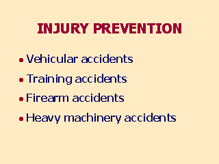 traumatic injury. The military epidemiologist tries to identify risk factors for injury.