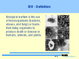 By definition, biological warfare is the use of microorganisms (bacteria, viruses, and fungi) or toxins (poisons produced by living organisms) to produce death or disease in humans, animals, and plants. Few healthcare providers have been trained to recognize or treat victims of a biological agent attack. Nonetheless, the principles of detection, personal protection, infection control, and treatment parallels the standard approach to any natural disease outbreak (such as influenza, Rift Valley Fever, meningitis, and hepatitis).