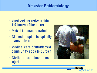 - Most patients arrive at the hospital within 1.5 hours of the disaster, many with only minor injuries. Arrival of these patients most often is uncoordinated (that is, they may arrive on foot, or by car, bus, ambulance or personal vehicles, and usually not in any order of injury severity). Patients usually go to the closest hospital, regardless of the level of emergency care capability, and will overwhelm one hospital, leaving other hospitals with very few disaster casualties. The medical care component of the disaster usually is over in a few hours, well before the arrival of state or federal resources. As a result, local communities need to be self-sufficient in any type of disaster.