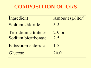 Rice-ORS: Rice powder (50 g) can replace the sugar or glucose. The amount of
