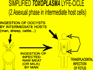 - Ingestion of meat (milk) from infected animals can lead to infection, this is also the usual way of infection for cats - Whenever non-immune pregnant mammals (man, sheep and goats are the most susceptible) get infected, fetus can be also invaded causing a variable degree of damages. |