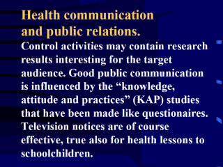 opportunity to introduce ovitraps in houses. Contacts with families are needed for many