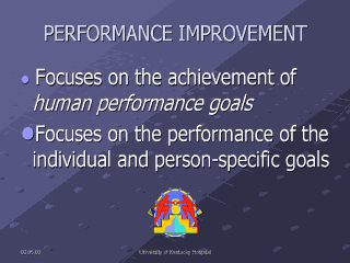 | Performance improvement is similar to quality improvement, but its focus is on the performance of the individual and achieving person-specific goals, instead of reaching organizational or departmental goals. |